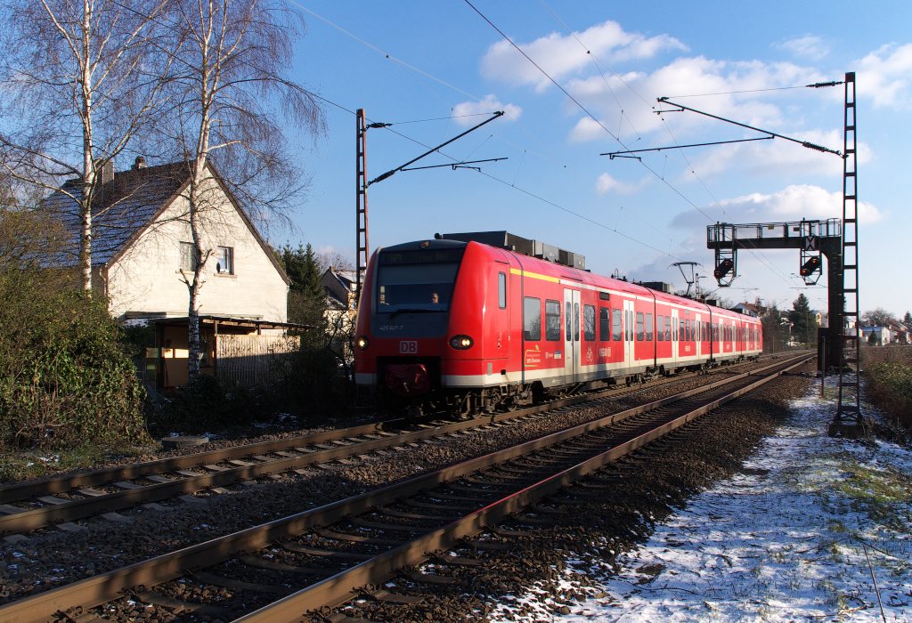 Bei -2 Grad ging es zur Anrufschranke nach Saarlouis-Roden. 425 127 ist als RB 71 Homburg/Saar - Trier unterwegs. In einer Minute wird der nächste Halt in Dillingen Saar sein. KBS 685 14.01.2013