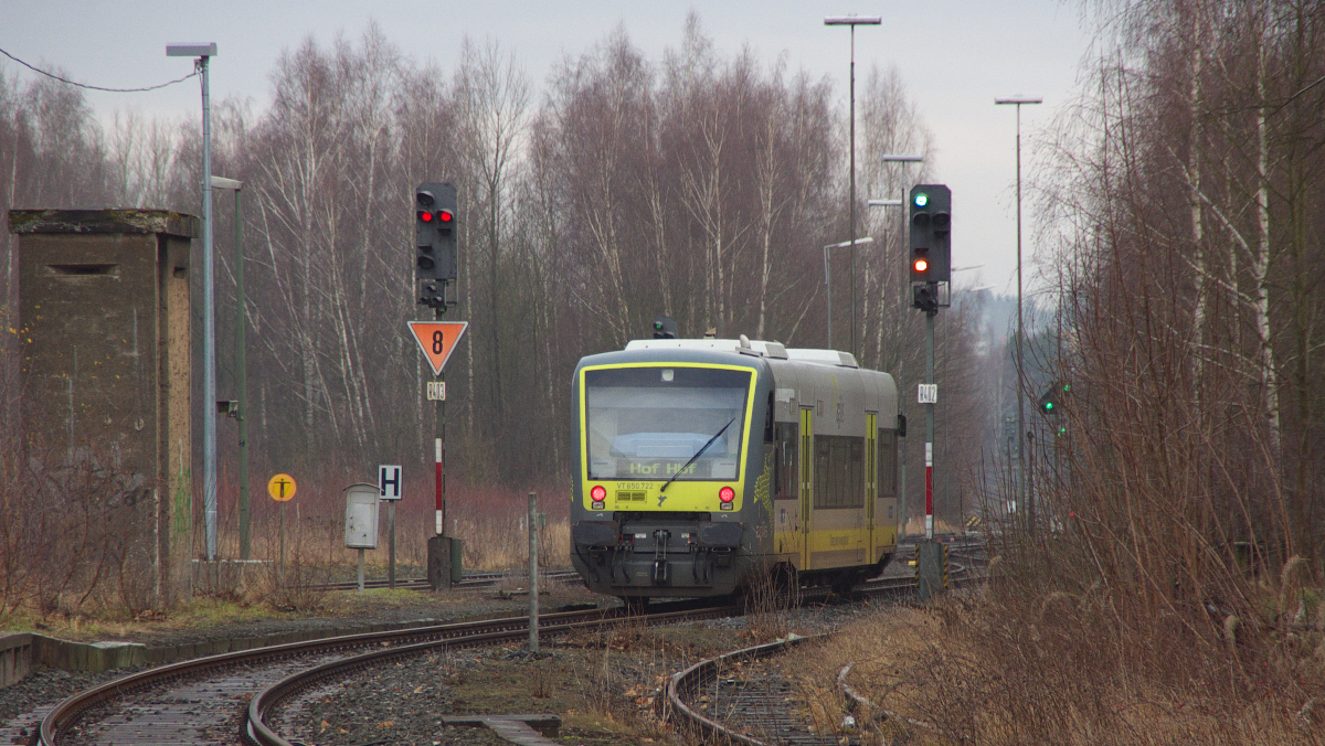 Der Triebwagen kommt aus Richtung Marktredwitz.