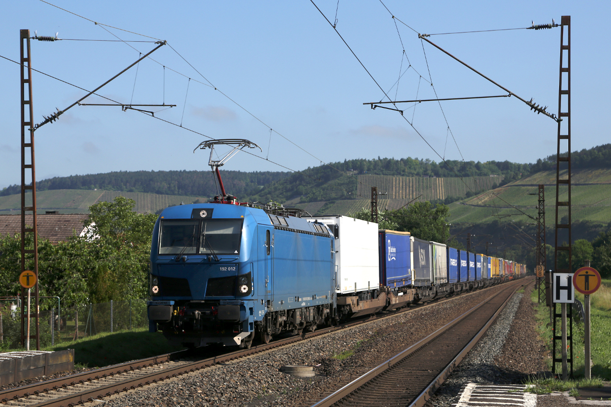 Das bei northrail eingestellte und für TXL fahrende Smartron-Doppel (192 011 und 192 010) befährt am 16.05.2020 mit Containern die nörd. Umgehung des Rangierbahnhofs München Nord. Stefan Mayer