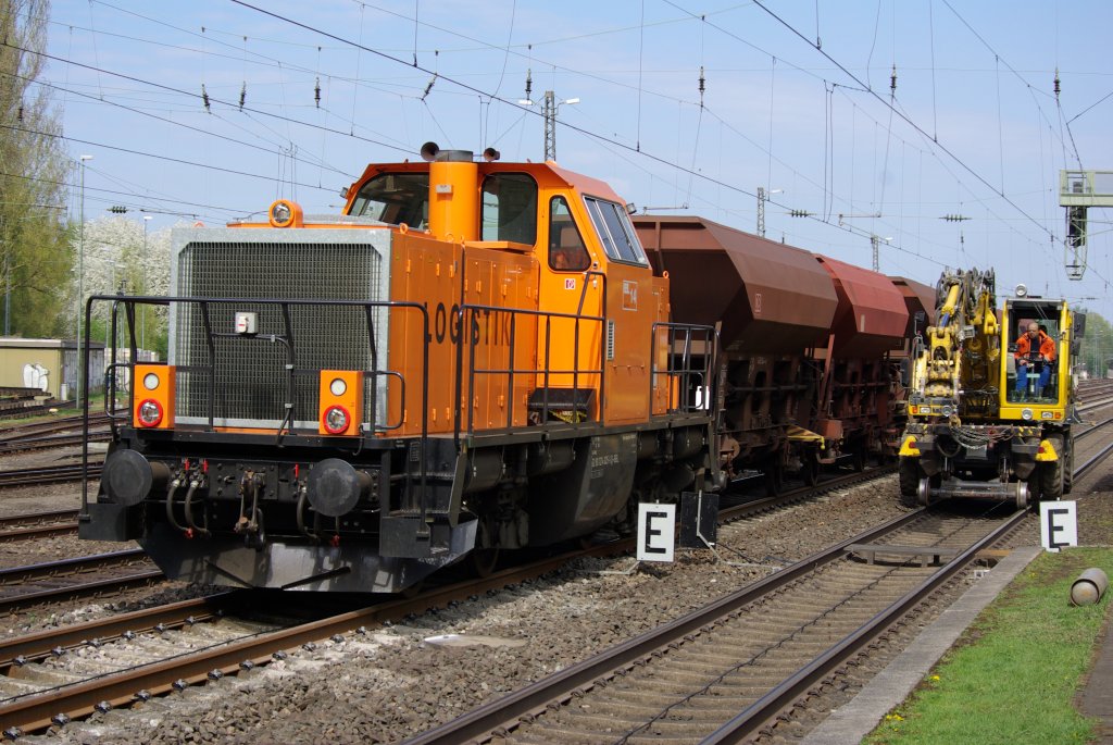 214 025 der BBL bei Gleisbauarbeiten (Weichenaustausch) im Bahnhof Dortmund-Scharnhorst