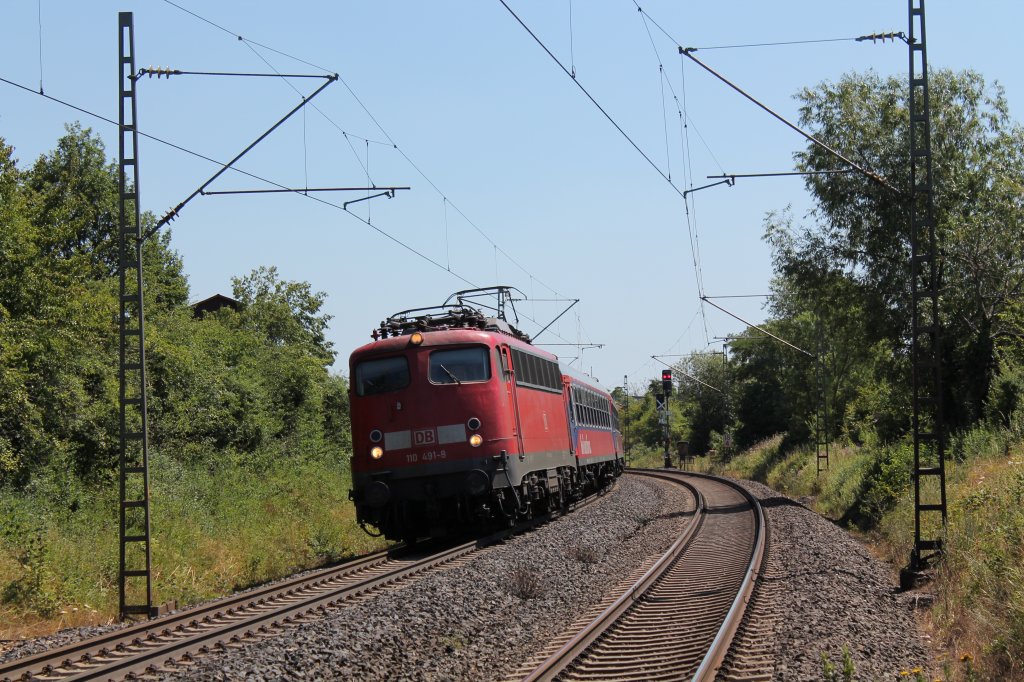 Bügelfalte - BR 110.491 mit SDZ in Hagenbüchach am 2.8.2013