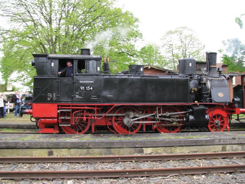 Wittenburg Bf; Dampflokomotive BR 91 134 -DR- beim Bahnhofsfest in Wittenburg 08.05.2010