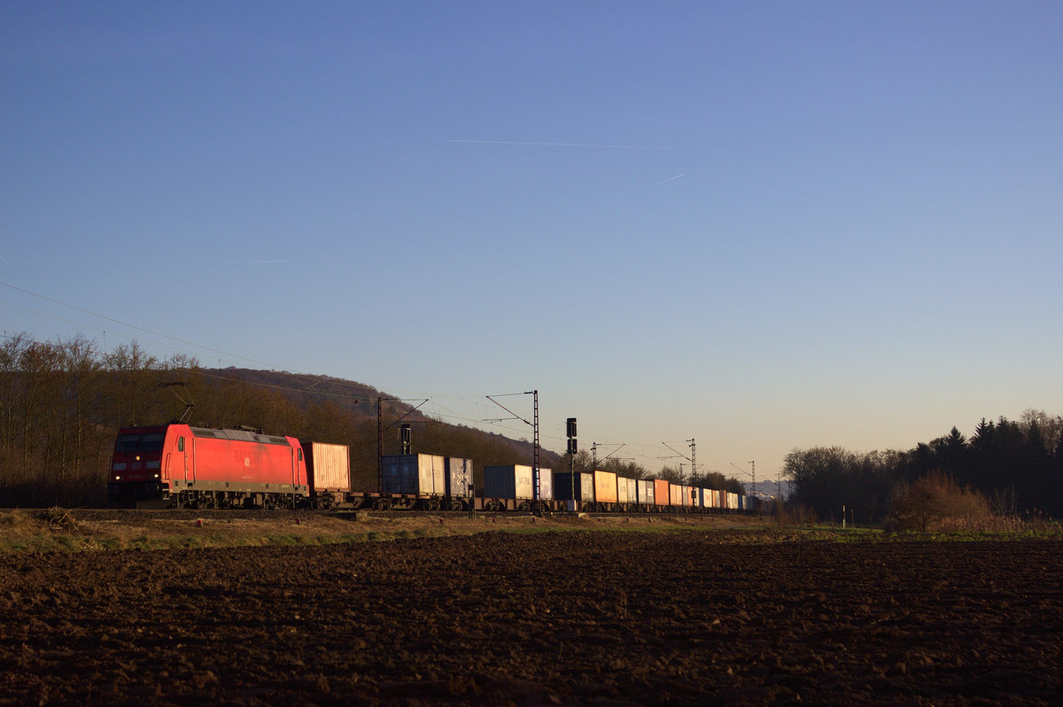 185 282 konnte am 10.12.16 mit einem Containerzug zwischen Veitshöchheim und Thüngersheim aufgenommen werden.