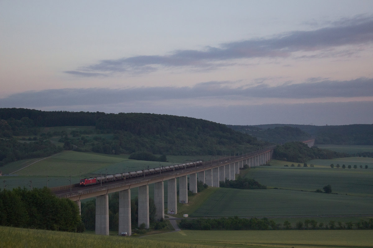 185 295 konnte am 04.06.15 mit einem Silozug bei dem Örtchen Leinach aufgenommen werden. In wenigen Minuten erreicht der Zug dann den Würzburger Hauptbahnhof.