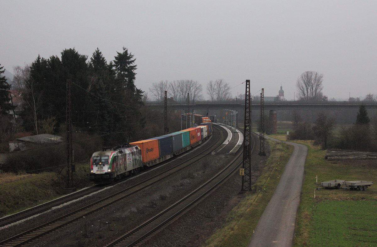 Der für das Deutsch Ungarische Freundschaftsverhältnis werbende 182 521 konnte am 17.12.16 bei der Durchfahrt durch Retzbach Zellingen aufgenommen werden.