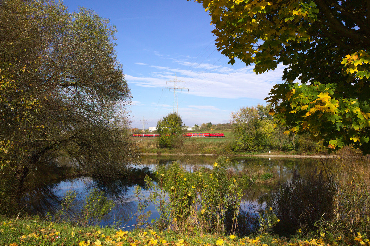 Der letzte Herbst für die Modus Wagen in Bayern war angebrochen. Auch wenn es nur noch zwei Reservewagen waren, waren diese rege im Einsatz. Da eine Garnitur mit 146 kurzfristig nicht zur Verfügung stand, wurde die Reservegarnitur mit jeweils zwei Doppelstock- und zwei Moduswagen ins Rennen geschickt. Hier hat der Zug gerade Karlstadt am Main verlassen und strebt mit geringer Verspätung dem nächsten Halt Retzbach entgegen. Das ganze ereignet sich während der Spessartsperrung am 01.11.17.