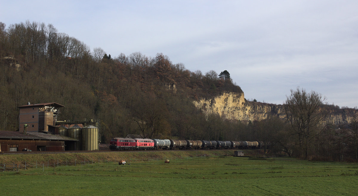 Es war mal an der Tagesordnung: Ein Güterzug auf der kleinen oberen Neckartalbahn. Jahrelang nur geprägt durch 612er und 650er. Güterzüge waren eher die Ausnahme. Doch auf einmal nimmt alles seinen Lauf; Rastatt und Gäubahn dicht. Totalausfall. Die kleine unbeachtete Nebenbahn wird auf ein Mal zu einem Knotenpunkt des internationalen Güterverkehrs. Knapp einen Monat nach dem die Strecke bei Rastatt wieder freigegeben wurde, musste aber nochmal an der Gäubahn gewerkelt werden was erneut zu einzelnen Umleitern führte. Den wohl interessantesten gab es am 23.11.17 zu sehen. Gebildet aus der altroten 218 387 und der Fernverkehrsmaschine alias 218 836 erreicht der Kesselwagenzug in Kürze Bad Niedernau mit einer kleinen Verspätung von etwa 2 Stunden. Eigentlich waren die Maschinen für die Südbahn eingeteilt und nicht für die Neckartalbahn... aber naja; so hat mir das eh besser gepasst.