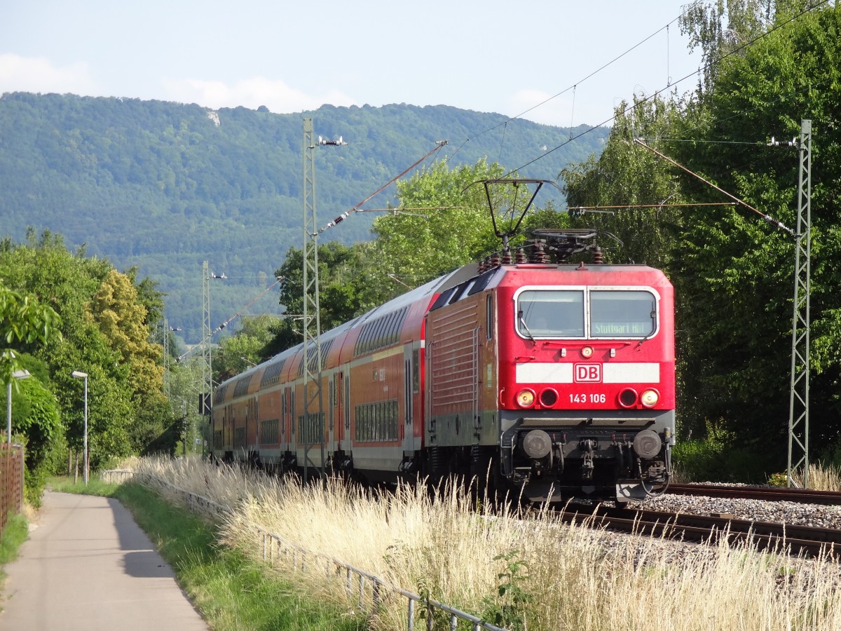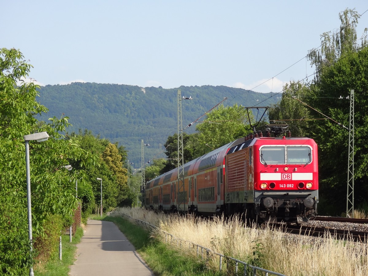 143 092 hatte am 14.7.13 den lieben langen Tag Dienst auf der Strecke Tübingen - Stuttgart.