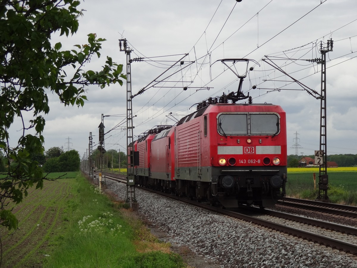 Ein ganz besonderer Zug, welcher die KBS310 sporadisch besucht, ist die Überführungsfahrt von Hannover nach Braunschweig. Am 24.5.13 wurde dieser Zug aus 143 062, 146 108 sowie 143 175 sowie 136 gebildet. Die Braunschweiger 143er haben keine festen Umlaufpläne und kommen nur selten zum Einsatz... leider.