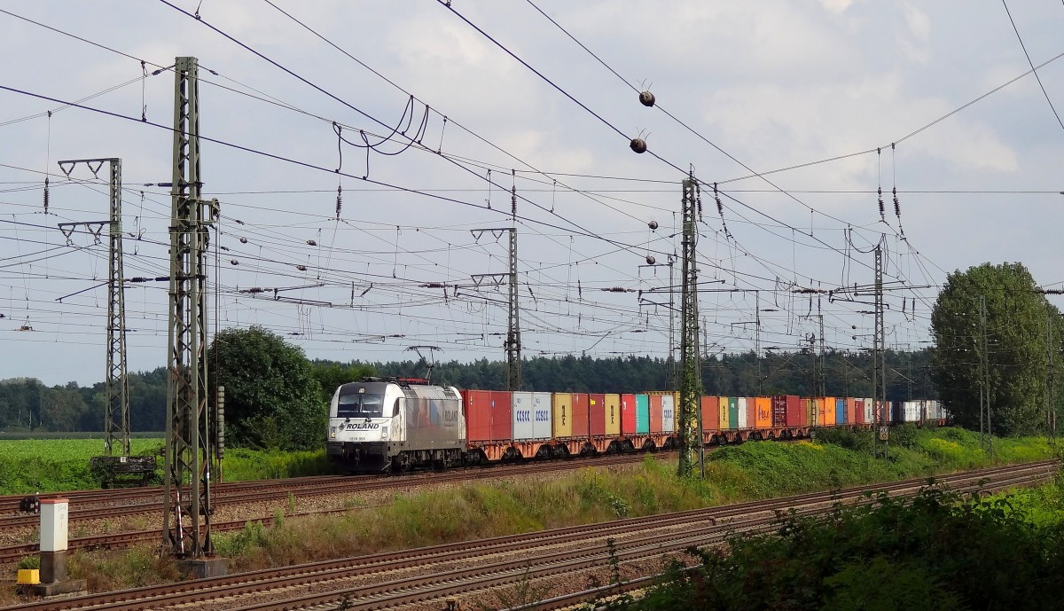 Völlig unerwartet schoss am 12.8.14 die 185 634, welches für das mir nicht bekannte Unternehmen HLG unterwegs ist. Im Schlepp hatte sie eine Mak des gleichen Unternehmens.