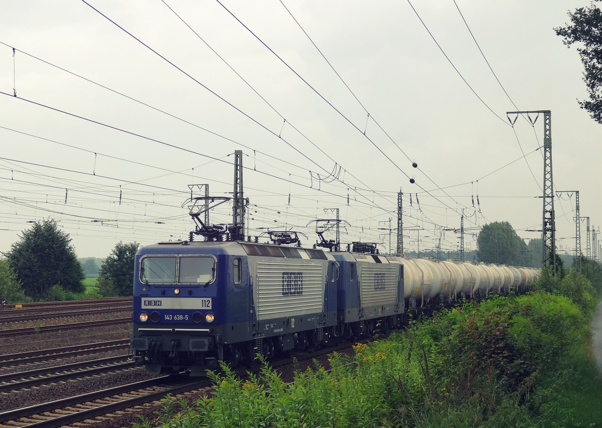 Am 7.8.14 hatte RBH112 zusammen mit einer Schwester kein leichtes Spiel vor einem vollbeladenen Kesselwagenzug aus Polen.