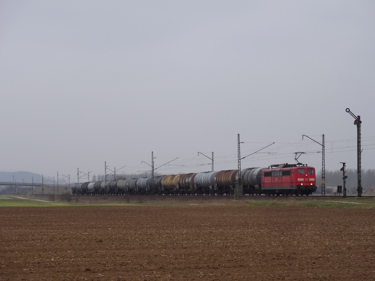 Während sich die Sonne für einen wunderschönen Tag bereit machte, zog die 151 149 völlig desinteressiert einen Mischer, der dem 6-Achsigen Kraftpaket wohl keine große Mühe erforderte.