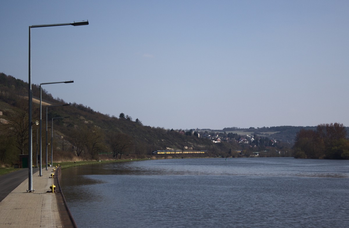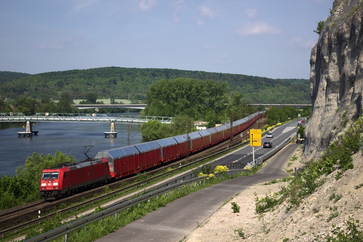 Für kurze Zeit ließ ich mich an einem Poller nieder, um einen Zug abzuwarten. Der erste Zug, der sich am Ufer entlang schlängelte war 182 598 mit ihrem ARS Altmann Zug. Ein Taurus ist in der Zeit der Vectronen, Traxxen und sonstigen Eurosprintern vergleichsweise selten an diesen Zügen zu finden.