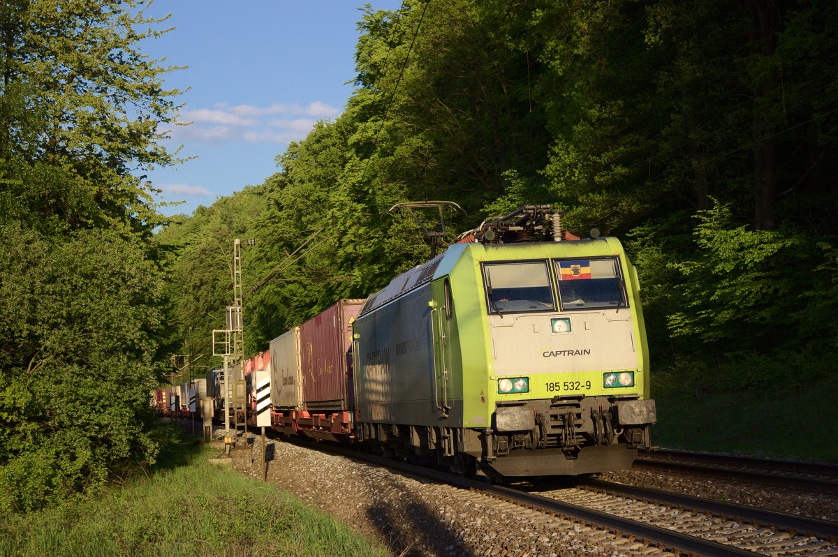 Die 185 585 konnte am 9.8.15 beim Abzweig Gümmerwald bildlich festgehalten werden. Seegurke
