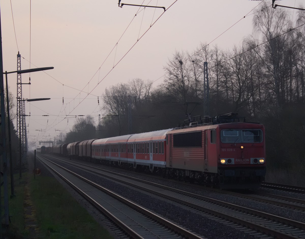 Einer der ersten Züge, welcher mir vor die Linse fuhr, war 155 028 mit ihrem Mischer und mehreren Kölner n-Wagen. Seegurke