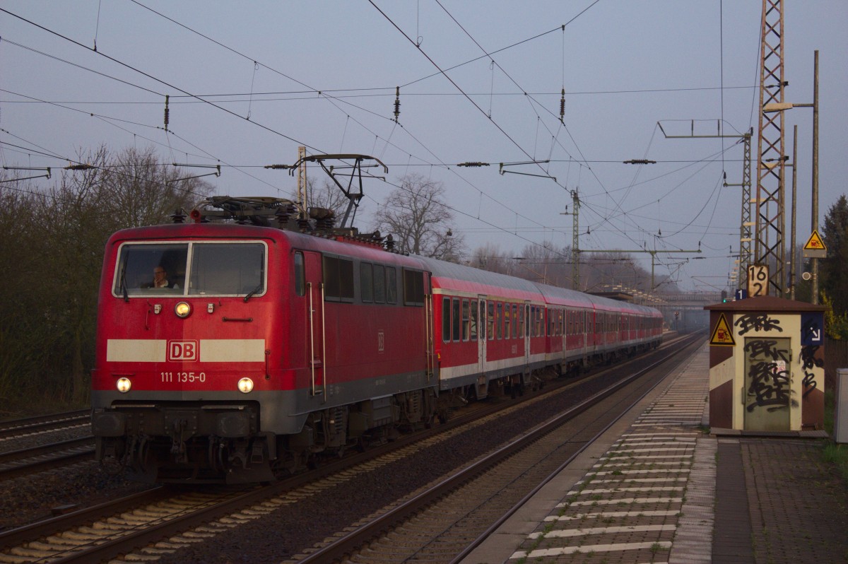 So konnte 111 135 mit ihrer n-Wagen Garnitur gegen 7:00 in Dedensen abgelichtet werden.