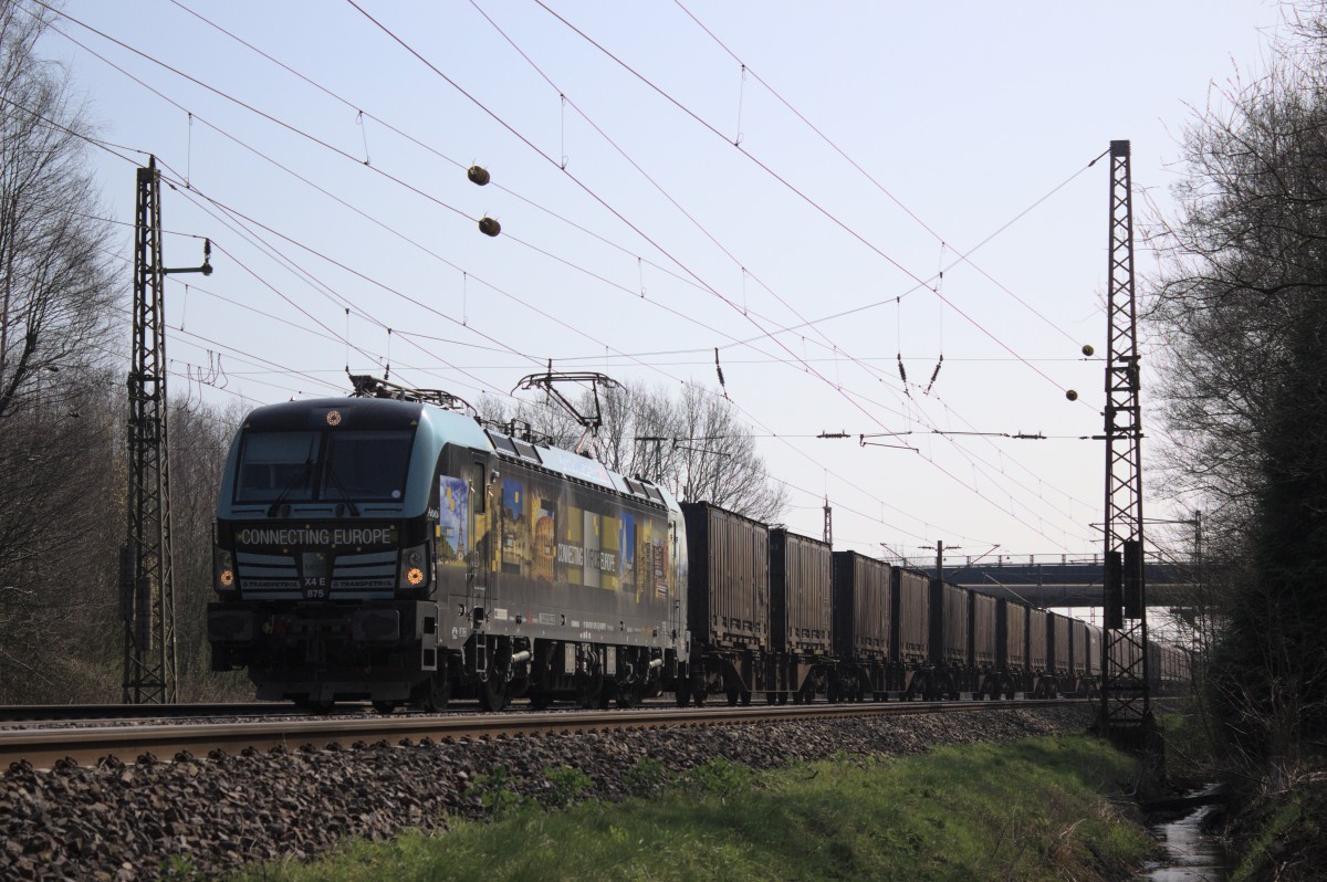 So ließ ich mich einfach überraschen, welche Lok denn dran sein sollte. Und zu meinem Glück war es dann auch noch die 193 875, welche in ihrer hübschen Werbung durchs Lande huscht.