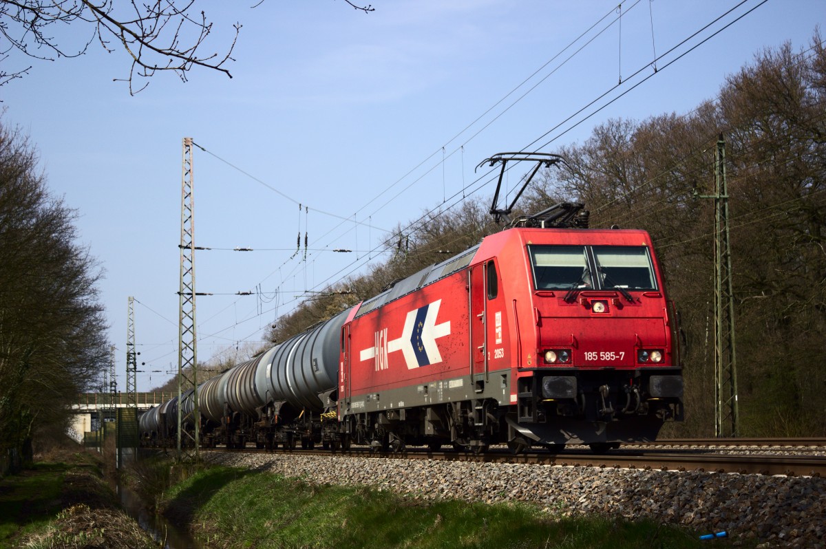 Die 185 von HGK schlechthin - Sozusagen meine persönliche Verfolgerlok der Hafen Gesellschaft Kölle... während sich die Heizprof, das Zementaxi, oder sonstige Kisten relativ selten von mir ablichten lassen, bricht 185 585 langsam den Rekord. Schon 7x hab ich die Kiste schon auf meinen Touren erwischt. An den Rekordhalter, nämlich 182 571, wird sie aber nicht ran kommen! :D