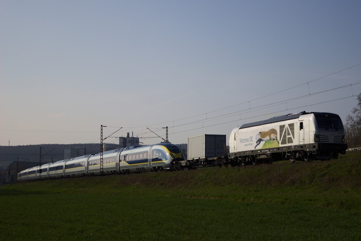 Der Vectron hatte einen Velaro Eurostar im Schlepp.