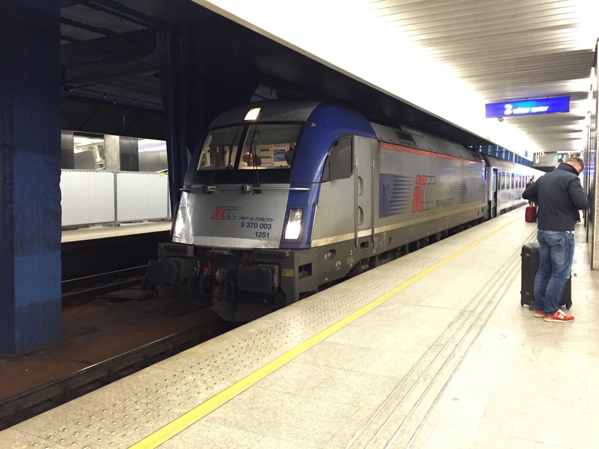 Die BR 5 370 003 von PKP an dem Berlin-Warzawa-Express in Warzawa Centralna am 13.02.1015