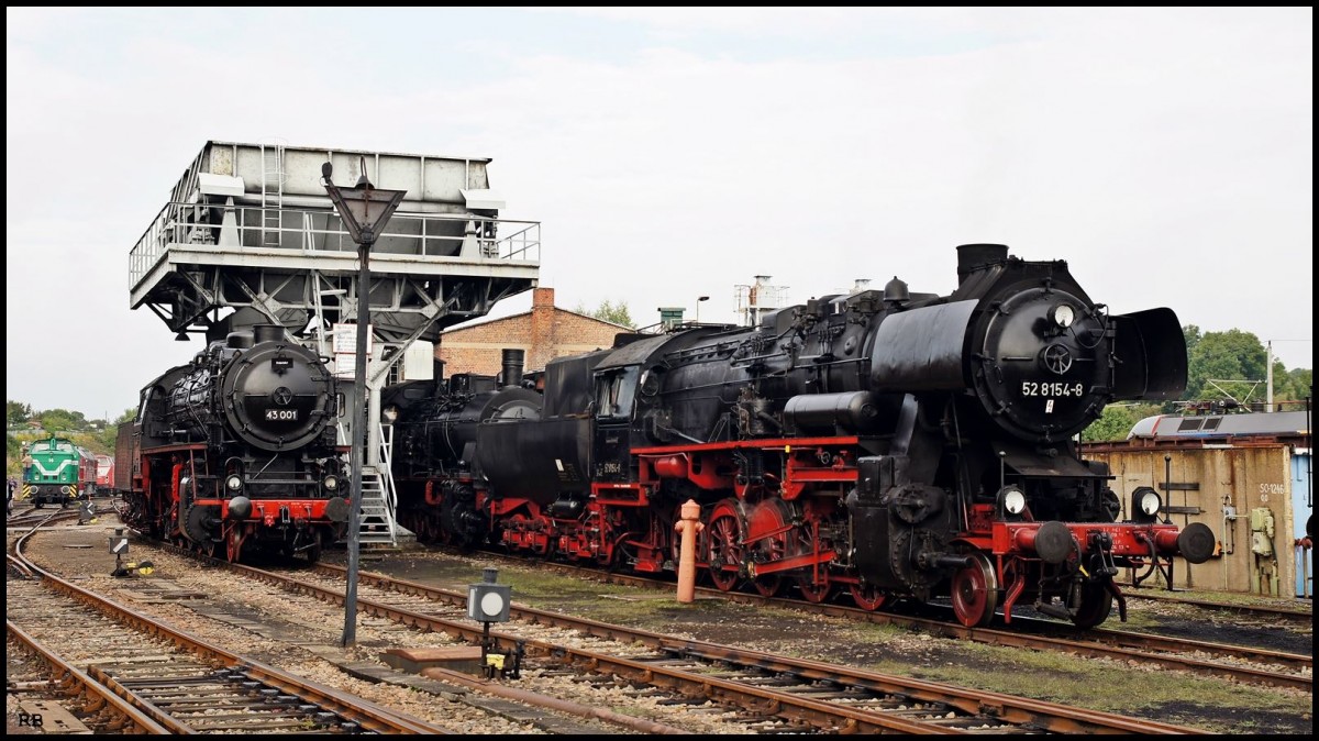 43 001 und 52 8154 vor dem Kohlebunker in Chemnitz-Hilbersdorf. Aufgenommen am 30.08.2014
