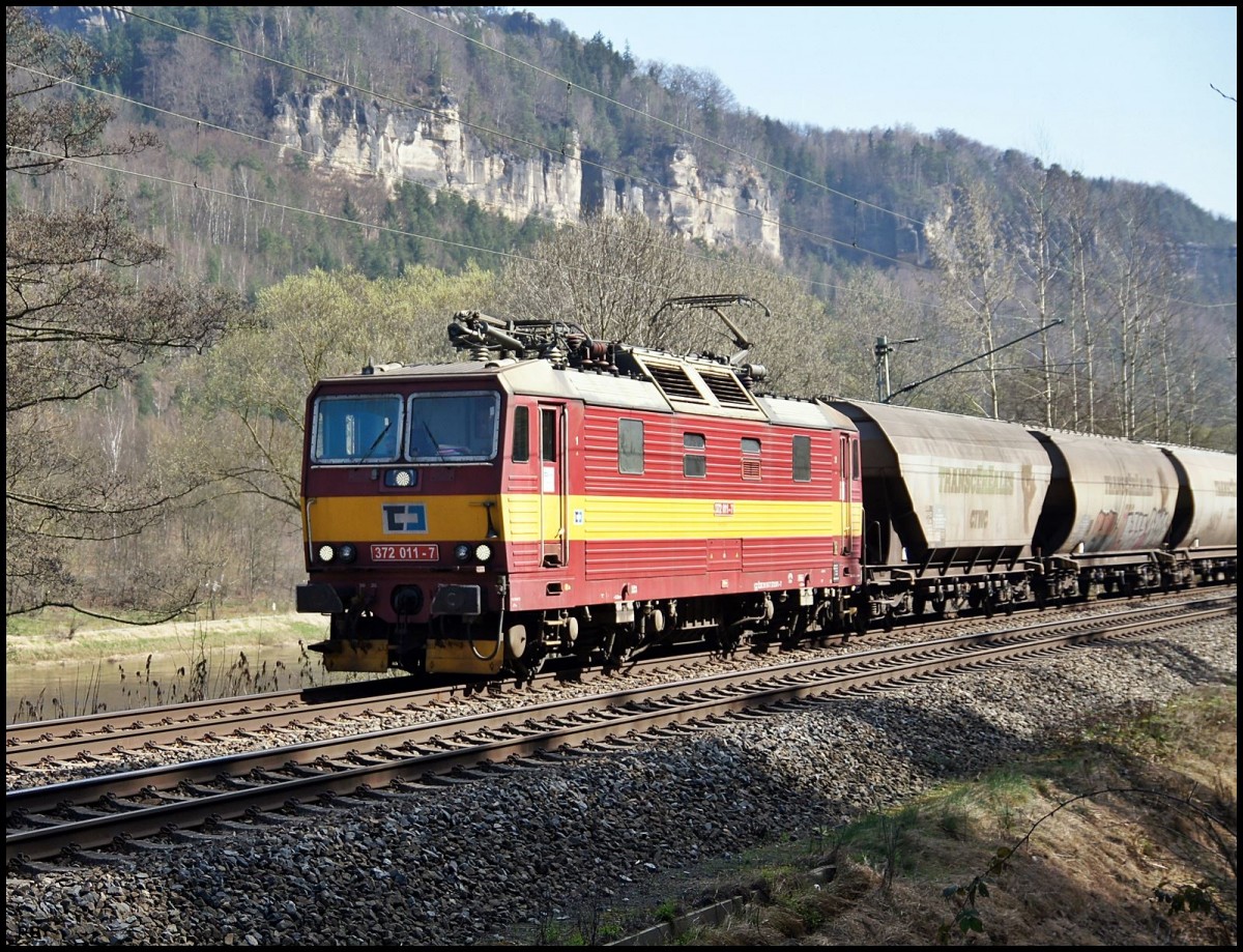 372 011 in Schmilka Hirschmühle. Aufgenommen 27.03.2014