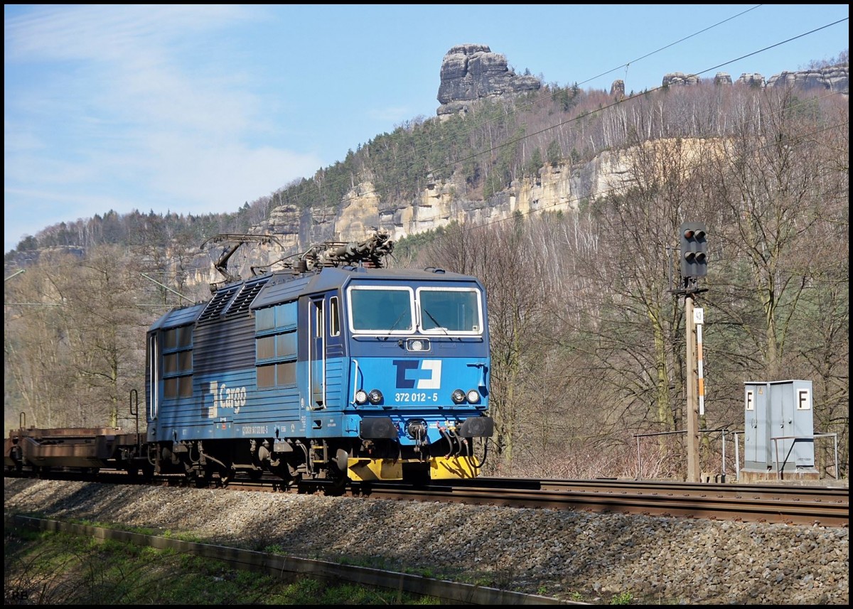 372 012 der CD zwischen Krippen und Schmilka-Hirschmühle. Aufgenommen am 27.03.2014