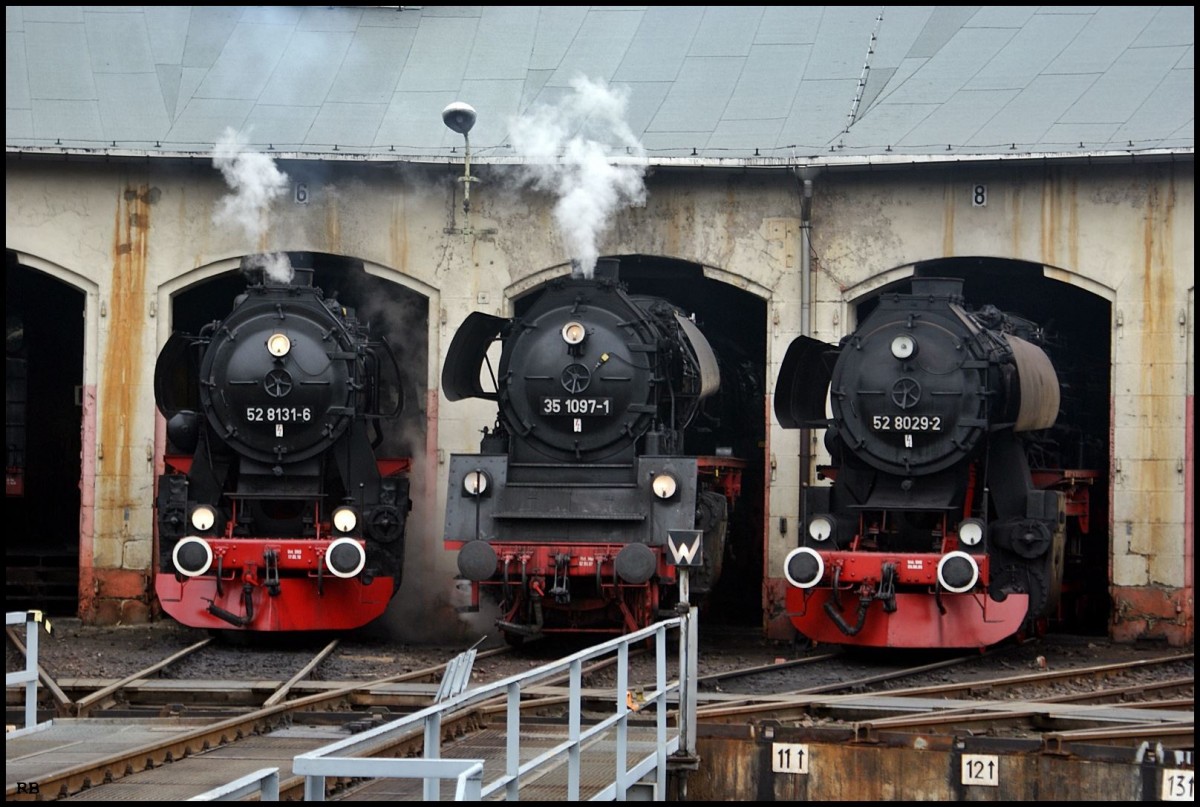 52 8131/35 1097 und 52 8029 im Bw Nossen Aufgenommen 19.05.2012