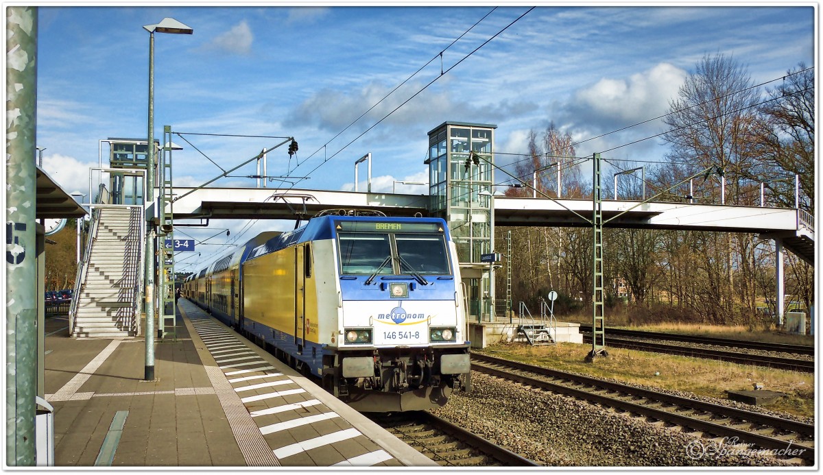 Regionalbahn Metronom im Bahnhof Lauenbrück, auf der Strecke Hamburg-Bremen, 10.März 2015