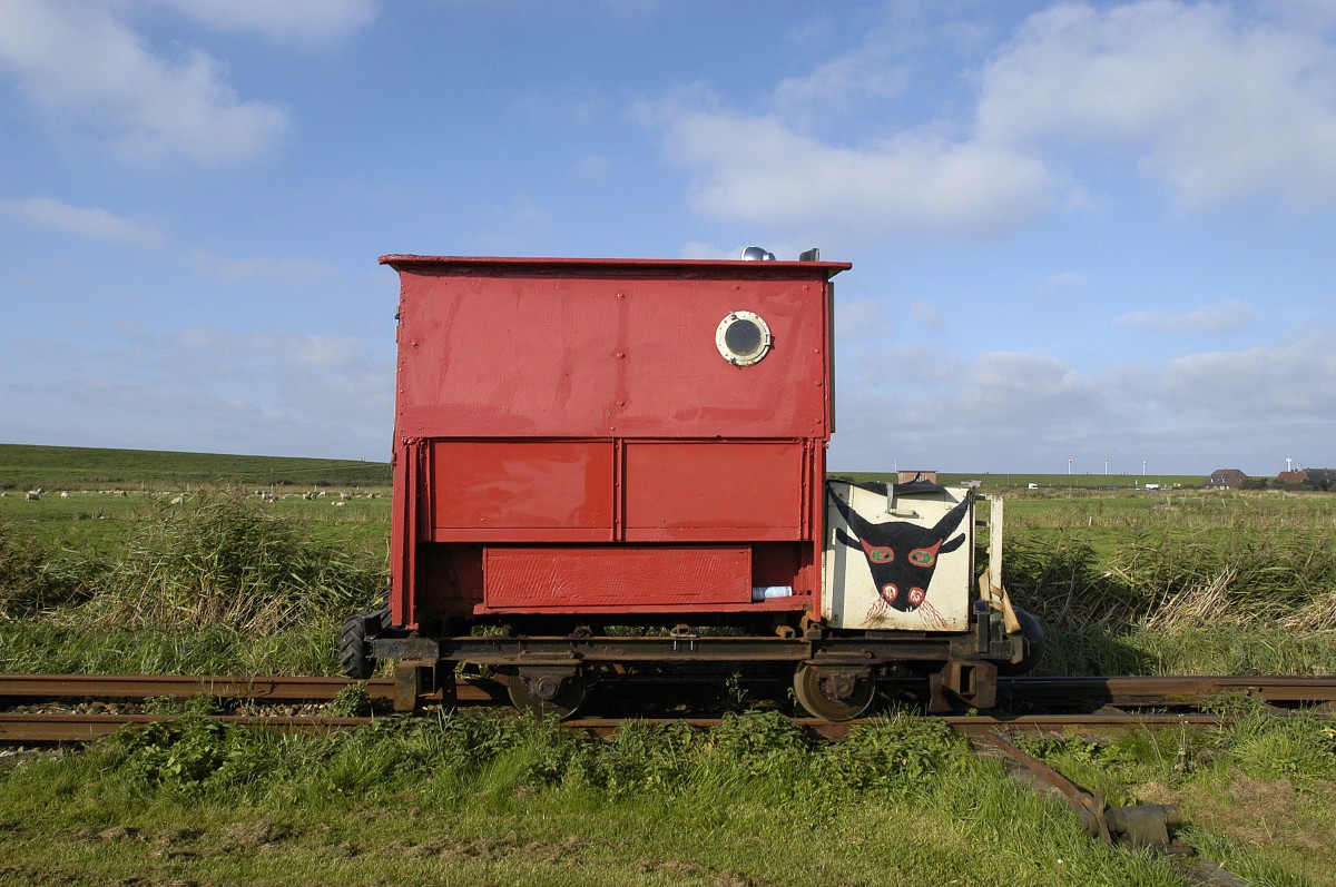Abfahrt mit der Lore vom Langeness Lore-Bahnhof nach Oland. Aufnahmedatum: 22. september 2008.