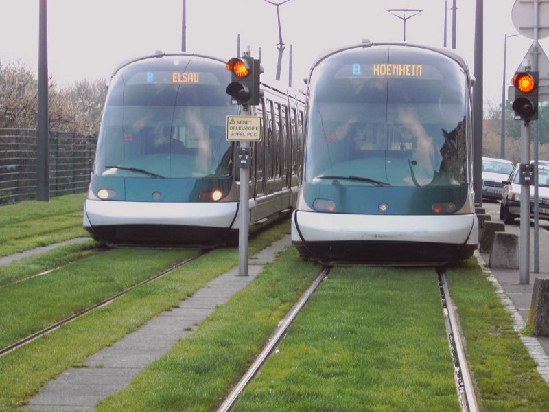 Die linke Eurotram ist gerade von Hoenheim-Gare gekommen.