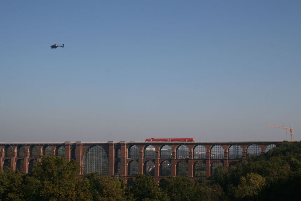 Während der 612èr im Schneckentempo über die Baustelle Göltzschtalbrücke schleicht,hat der  Kollege  über ihn kein Problem mit Tempolimits.11.10.2010.