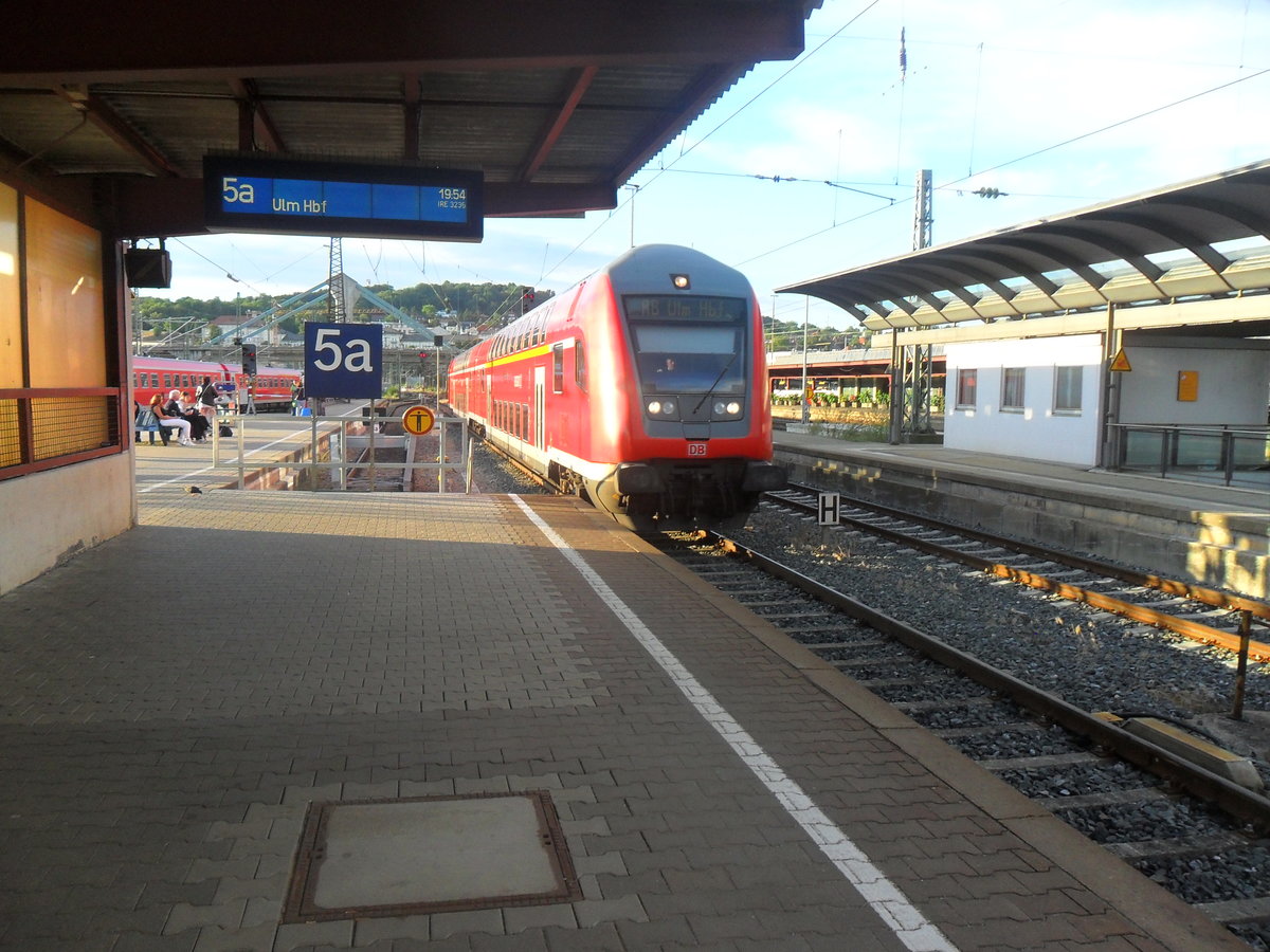 Eine N Wagen Garnitur kam planmäßig aus Stuttgart in den Aalener Bahnhof gefahren. Nach einem Richtungswechsel fuhr sie wieder zurück nach Stuttgart als Re 19438. April 2016