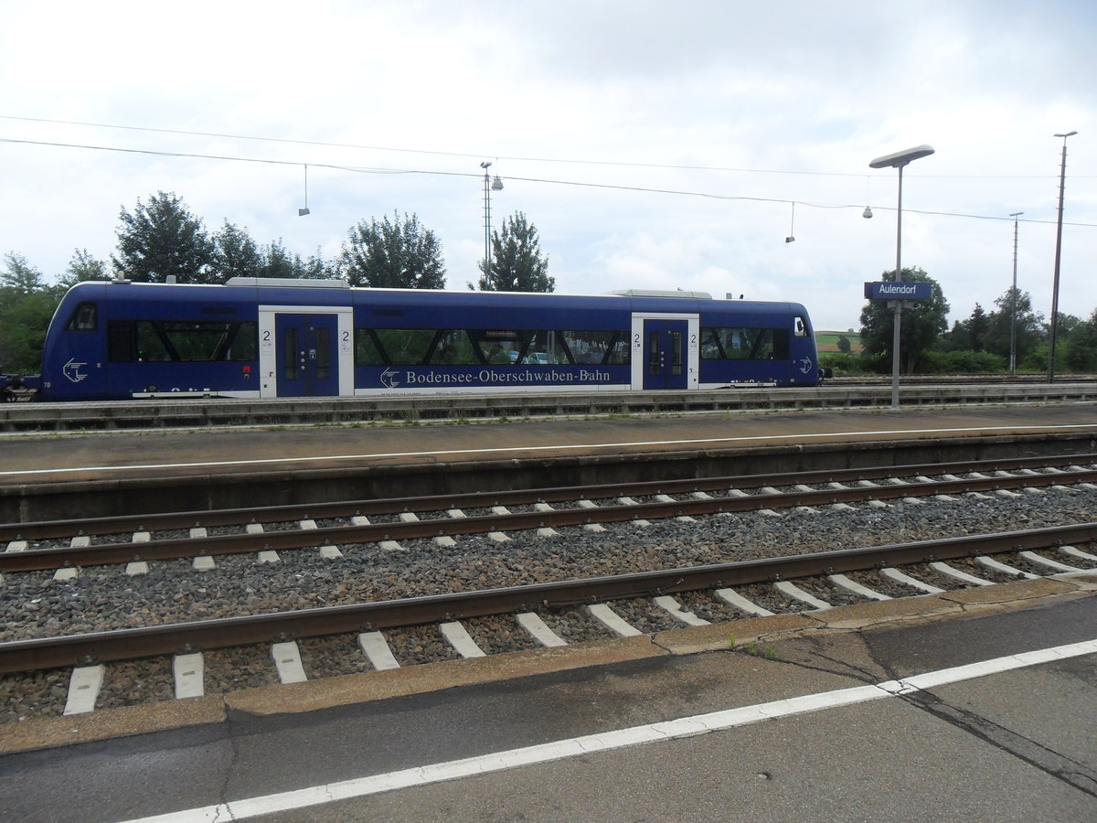 Vt 70 der Bodensee Oberschwaben Bahn im Bahnhof Aulendorf vor der abfahrt als BOB 87581 31.07.16