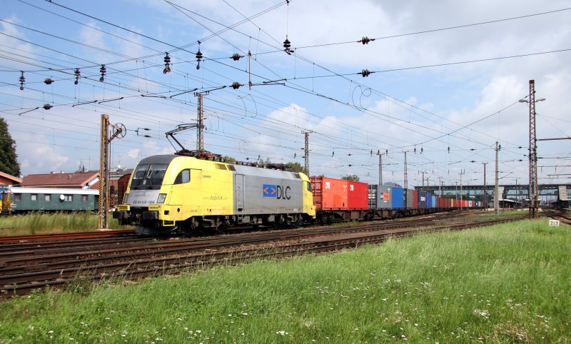 Ausfahrt der DLC ES64U2-066 in Richtung Passau aus dem Bahnhof Wels am 1. September 2007.