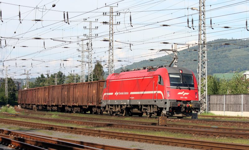 Die slovenische 541-109 auf dem Weg in die Heimat - aufgenommen am 21. August 2007 bei der Einfahrt in den Hauptbahnhof Linz.