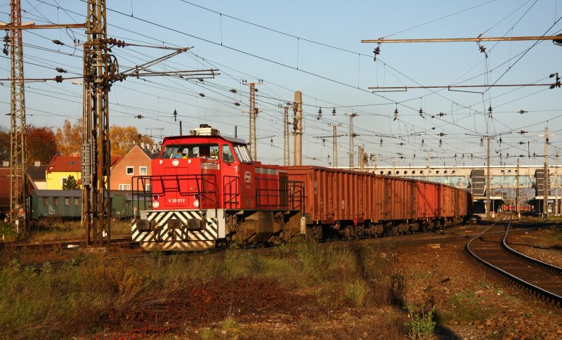Leerrübenzug mit V 20 012 von Stern & Hafferl bei der Ausfahrt aus dem Bahnhof Wels am 1. November 2007.