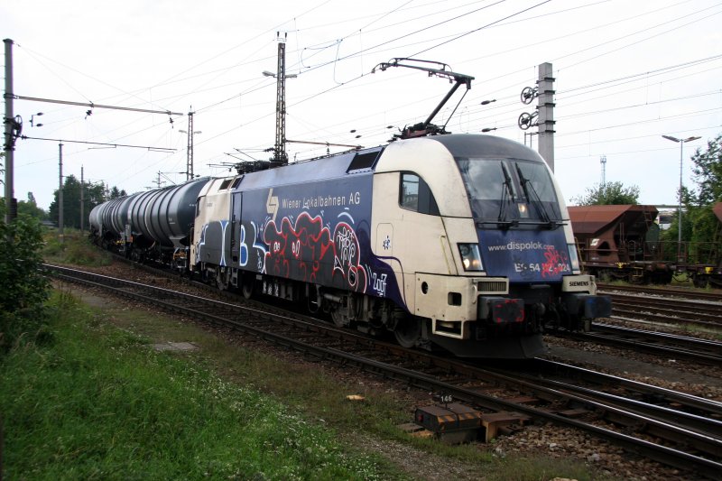 Schön langsam wird es zur Gewohnheit - wieder einmal hat ein Sprayer eine WLB-Maschine "erwischt".ES64U2-024 aufgenommen am 1.September 2007 bei der Einfahrt in den Bahnhof Wels.
