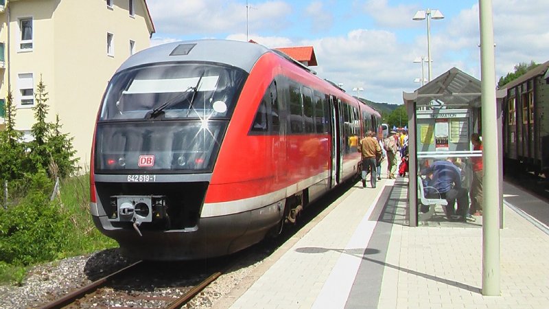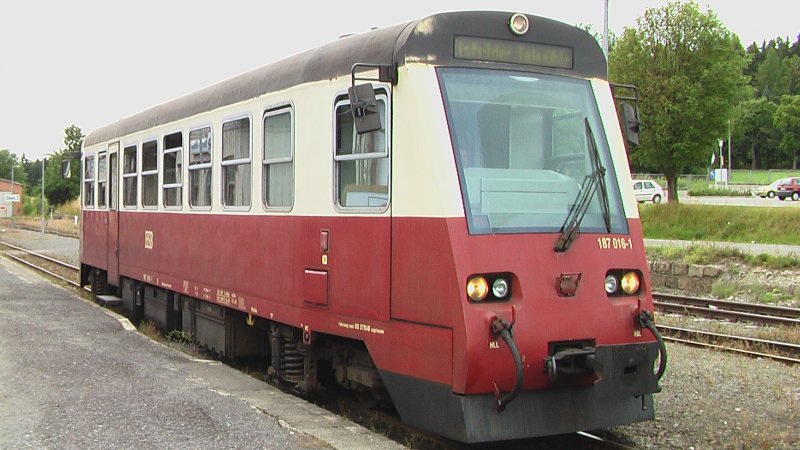 Am Montag, 14. August 2006 steht um 16:37 Uhr der Triebwagen 187 016-1 der Harzer Schmalspurbahnen im bahnhof Benneckenstein zur Weiterfahrt nach Eisfelder Talmühle. Dominik Bugschat
