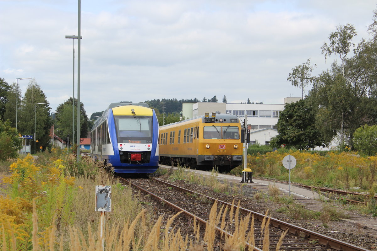 VT719 001 als Messzug am 8.9.2017 in Peiting Ost. Der Zug wartete hier auf die verspätete BRB um anschließend seine Fahrt nach Grafing fortzusetzten.