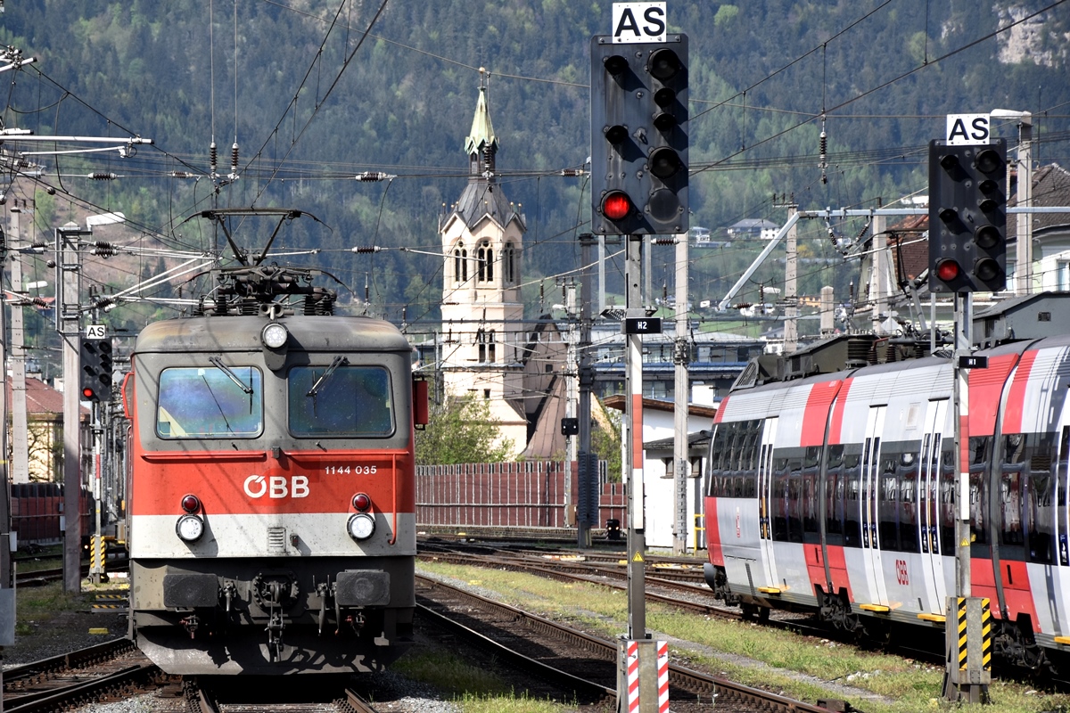 ÖBB 1144.035 erreicht (aus Richtung Kufstein kommend) am 23.04.2018 Innsbruck Hbf.