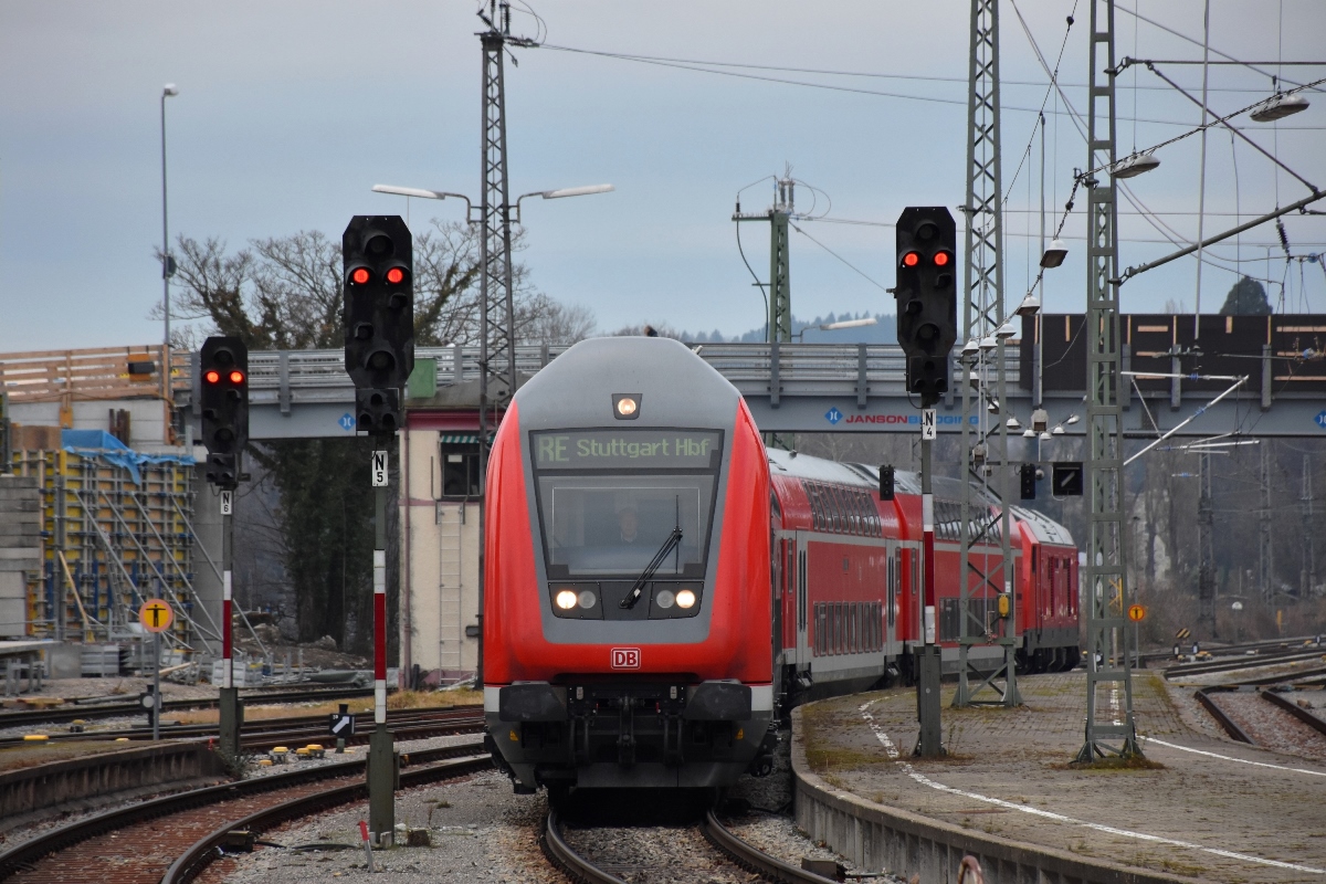 RE 4230 nach Stuttgart wird in Lindau bereitgestellt (28.01.2018).