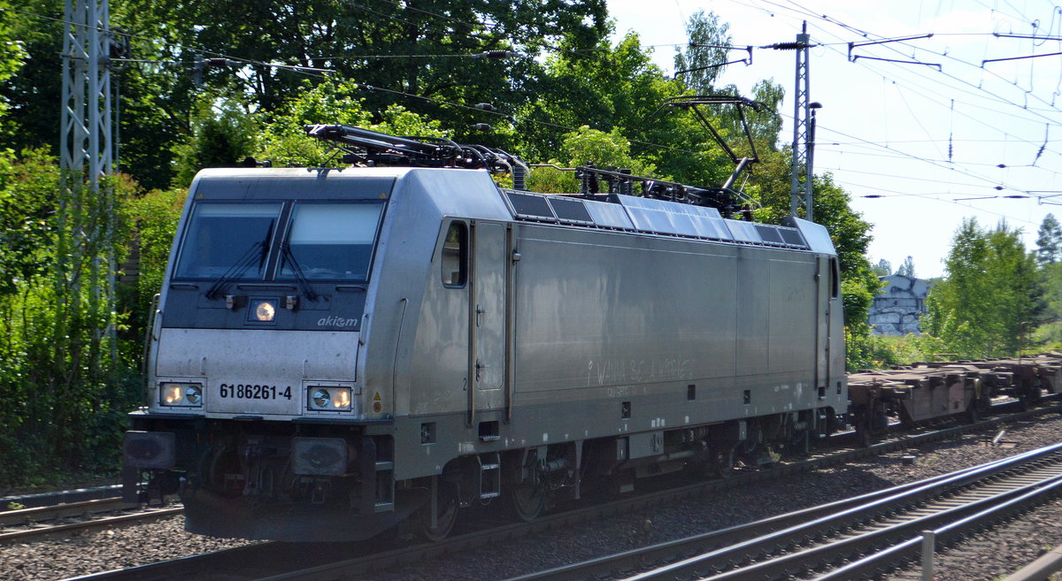 Die LINEAS Group NV/SA, ein in unseren Breitengraden neu tätiges EVU mit der Rpool "186 456-0" [NVR-Number: 91 80 6186 456-0 D-Rpool] und einem PKW-Transportzug (fabrikeneue Toyota u. LEXUS Modelle) Richtung Frankfurt/Oder am 23.05.18 Berlin-Hirschgarten. Lothar Stöckmann