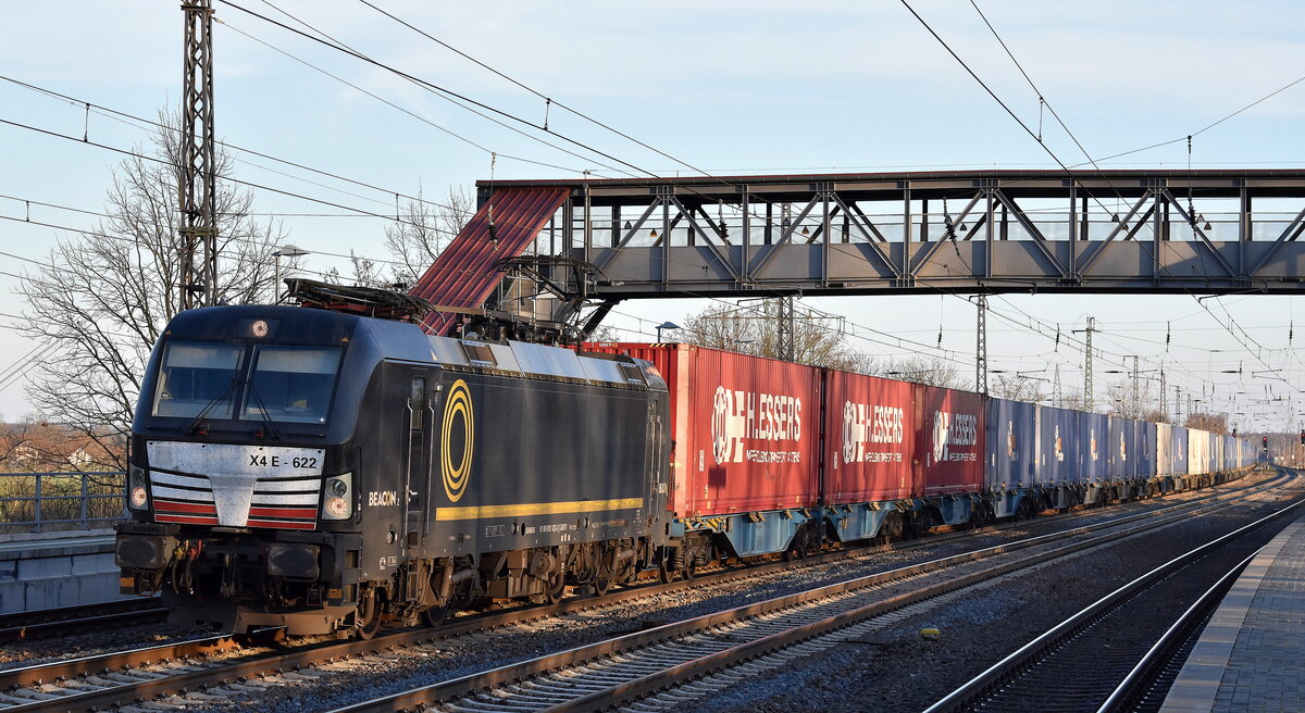 LTE Logistik und Transport GmbH, Graz [A] mit der BRCE Vectron "X4 E - 622" [NVR-Nummer: 91 80 6193 622-8 D-DISPO] und einem Containerzug am 05.12.24 Höhe Bahnhof Saarmund. Lothar Stöckmann