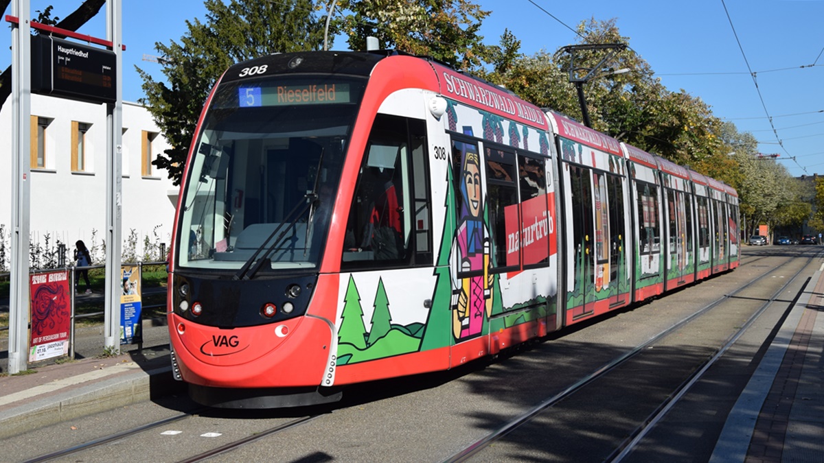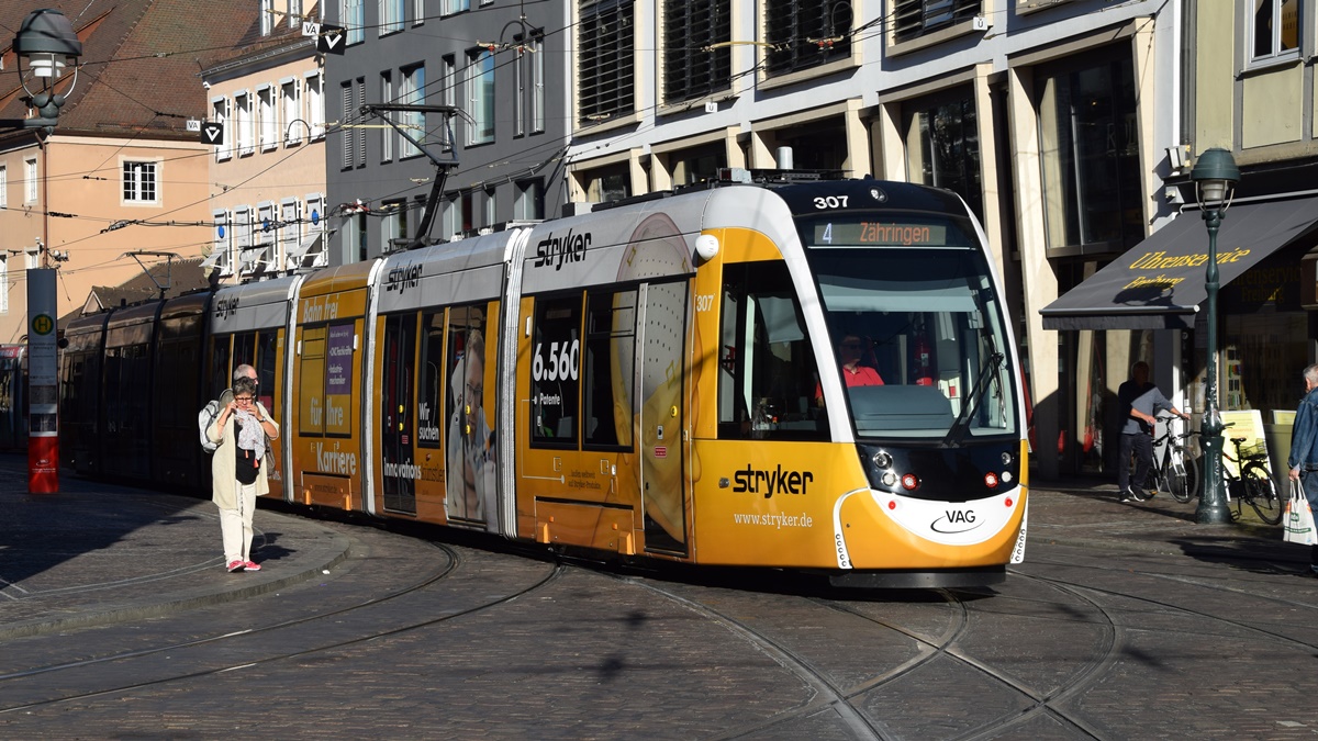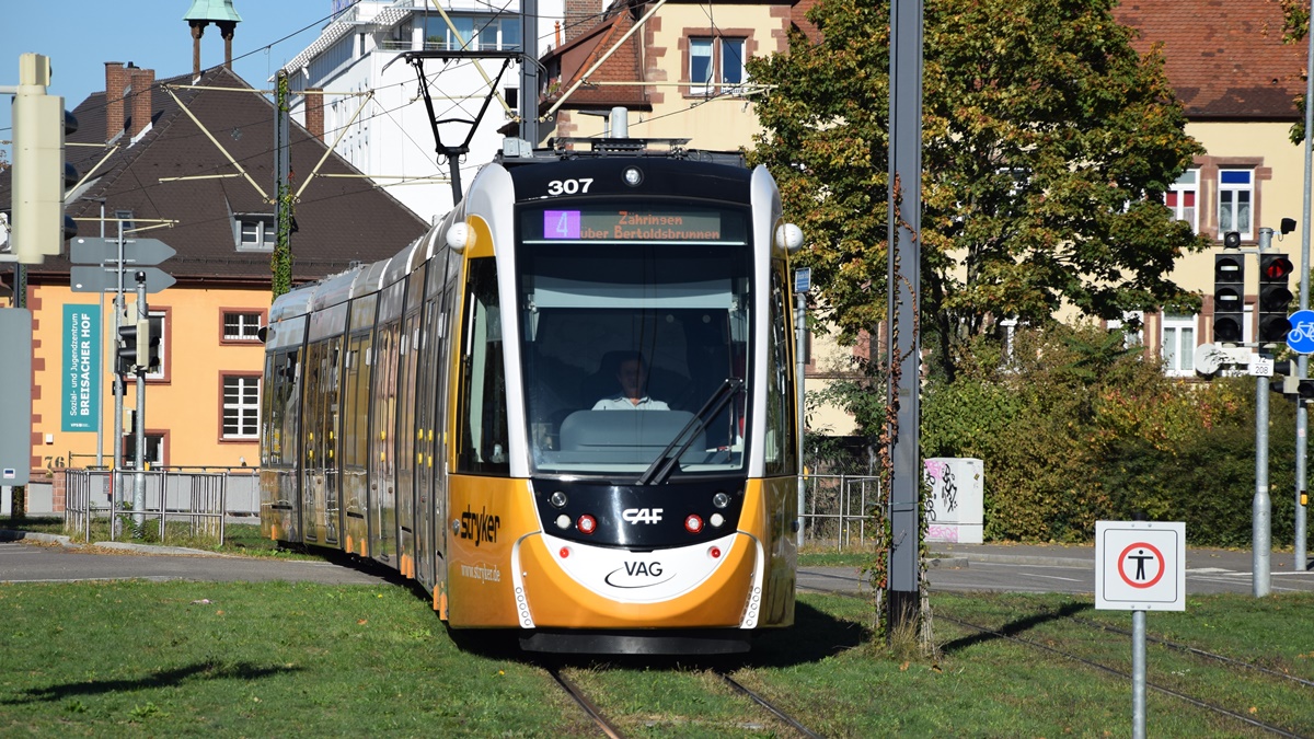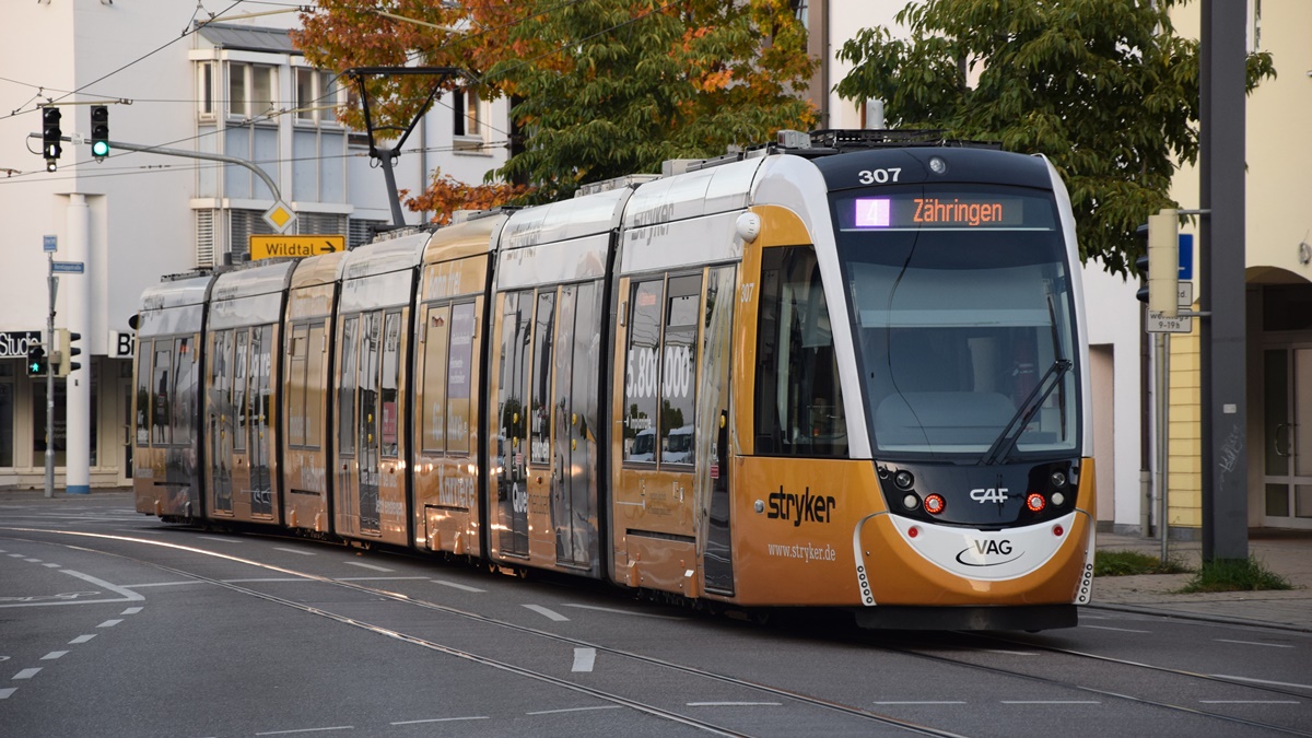 Freiburg im Breisgau - Straßenbahn CAF Urbos 307 - Aufgenommen am 13.10.2018