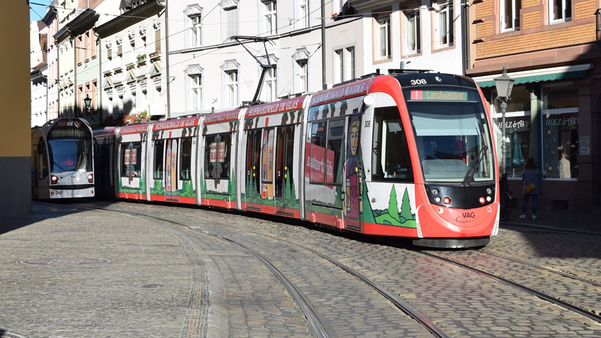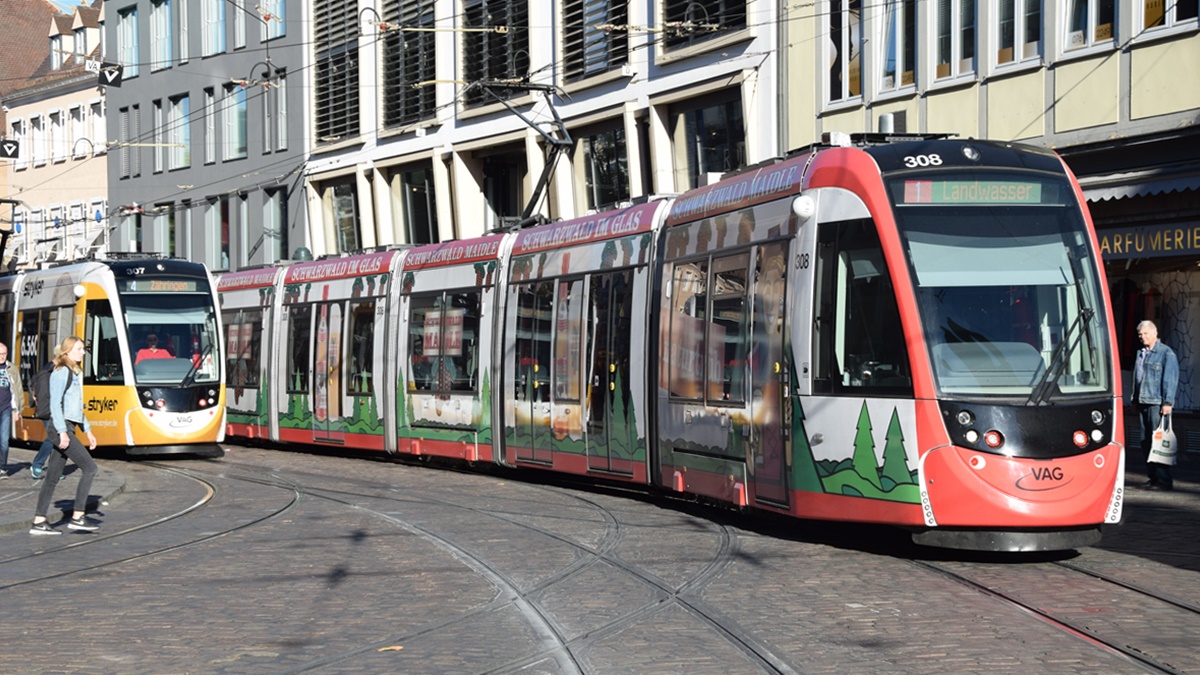 Freiburg im Breisgau - Straßenbahn CAF Urbos 307 und 308 - Aufgenommen am 13.10.2018