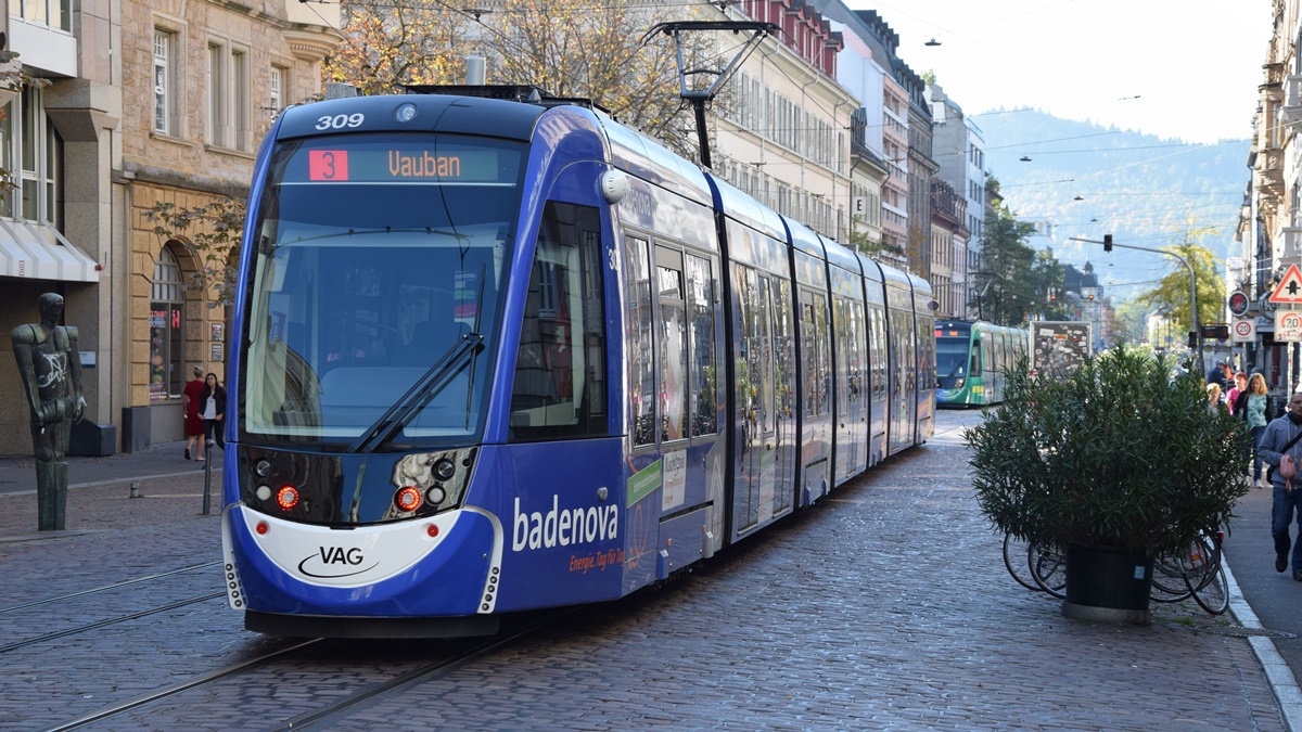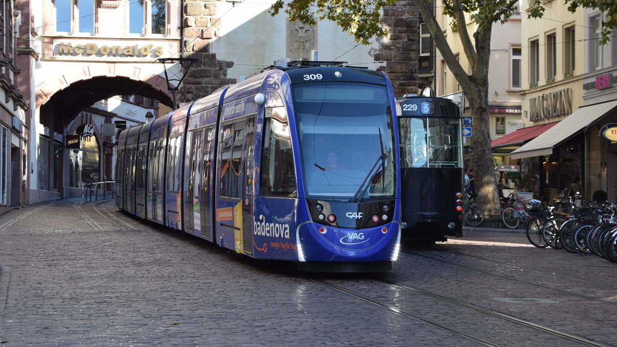 Freiburg im Breisgau - Straßenbahn CAF Urbos 309 - Aufgenommen am 13.10.2018
