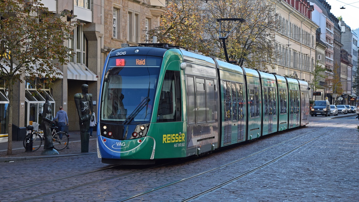 Freiburg im Breisgau - Straßenbahn CAF Urbos 306 - Aufgenommen am 13.10.2018