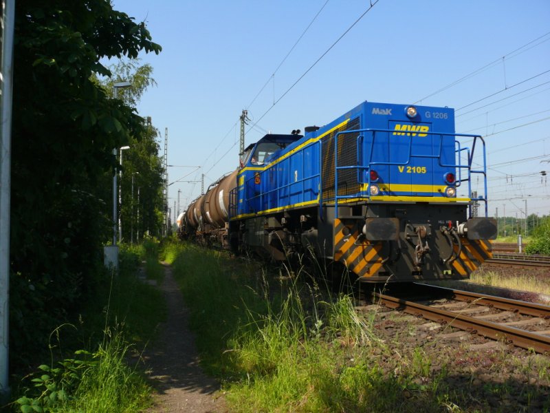 V2105 der MWB in Oberhausen-West und ein danke schön an den Lokführer fürs freundliche Grüßen 25.5.2009