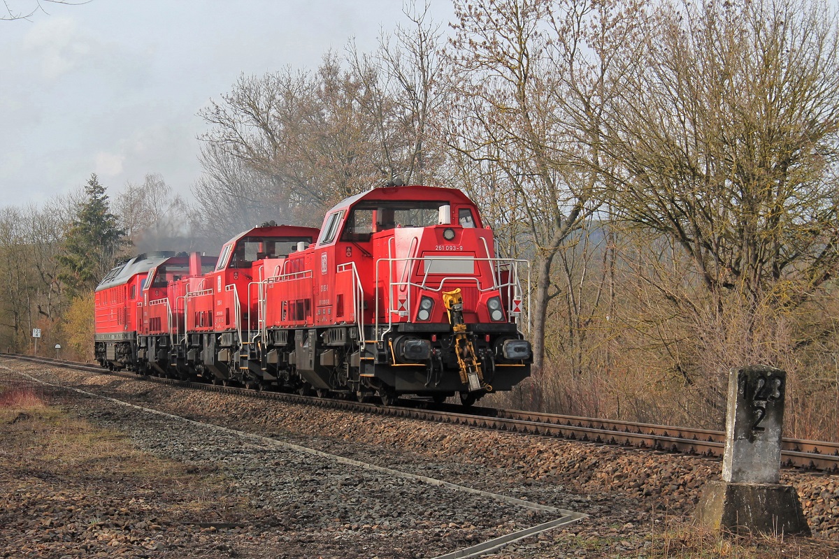 Nach einigen Tagen rund um Saalfeld/Saale anlässlich des Fahrtenprogramms  D 501/504 Volldampf nach Thüringen  ist die WFL-03 2155-4 ( NVR-Nummer 90 80 00 03 155-3 D-WFL) hier am Nachmittag des 6.4.2025 auf ihrem Rückweg von Saalfeld/Saale nach Berlin-Schöneweide in der Ausfahrt von Saalefeld zu sehen.